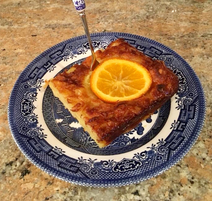 Pour cake mixture into the prepared pan and bake on 350 F (180 C) for one hour. Add the cool syrup to the hot cake as soon as it comes out of the oven and set it aside for an hour until the syrup has soaked in.