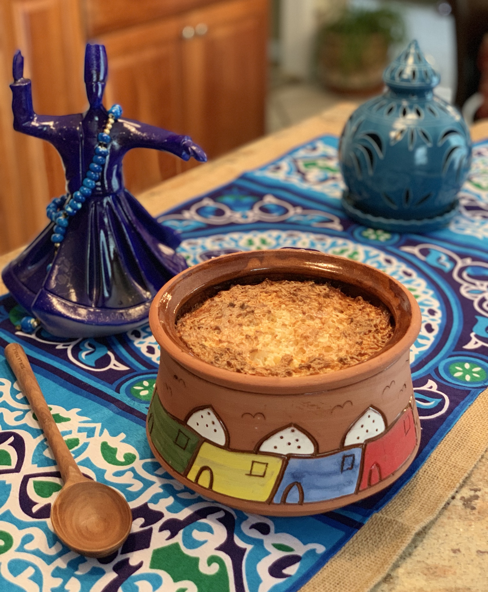 In this recipe, the rice is cooked in a traditional Egyptian clay pot called “Beram”. It is slow cooked in the oven using milk and cream as the cooking liquid, instead of water. This recipe can be simply made with just Rice, or we can turn it into a one-pot-meal by adding meat or chicken.