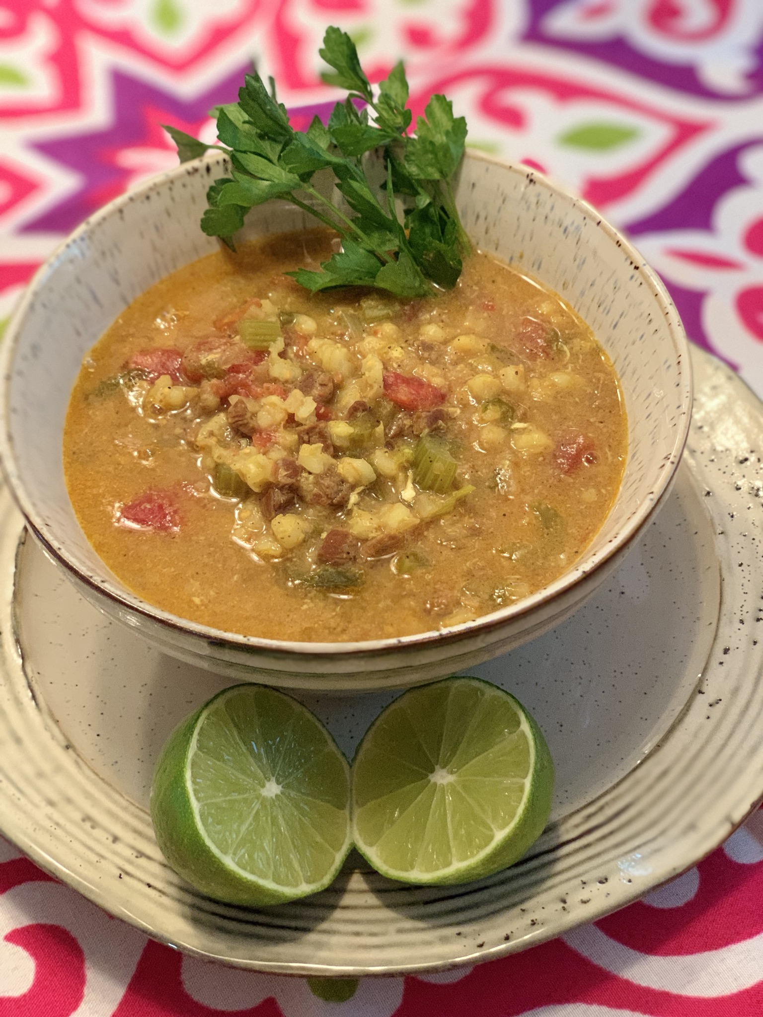 Right before serving, add salt to taste and stir in lemon juice and beaten eggs, let eggs cook for 2 minutes, stirring constantly. Garnish the top with fresh parsley or cilantro and serve.