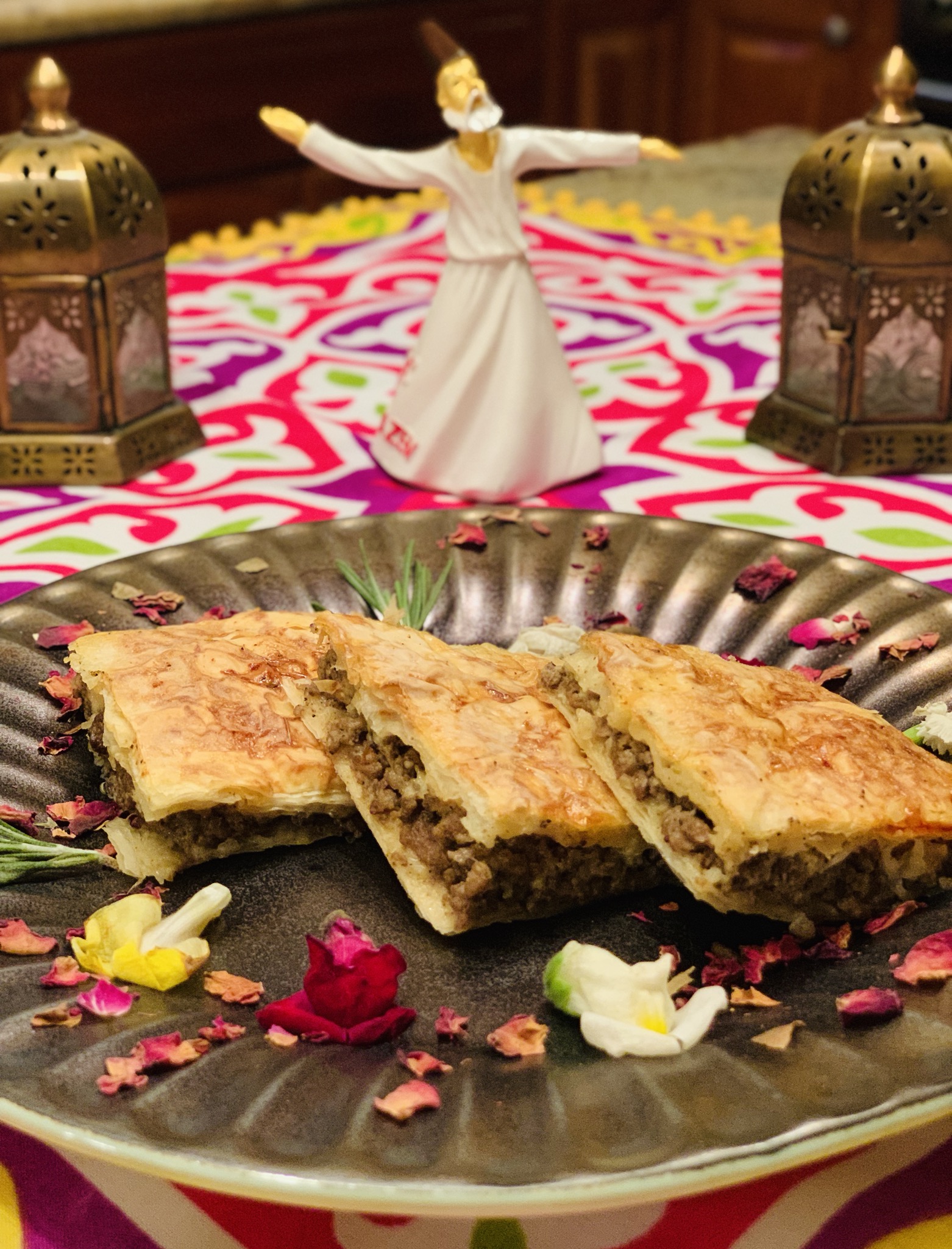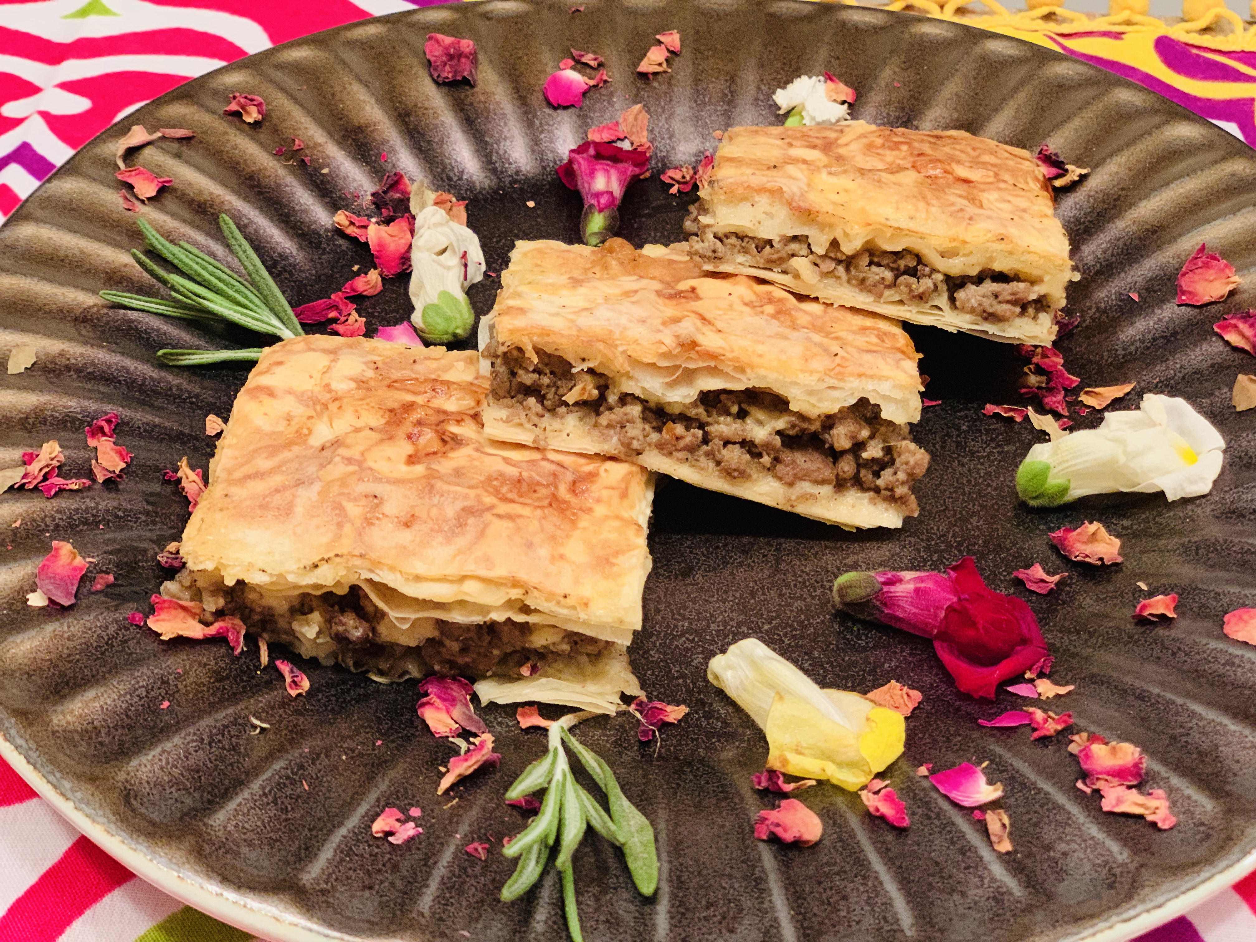 Layer the remaining sheets on top of the meat repeating the same process as before, until the phyllo sheets are all used up.