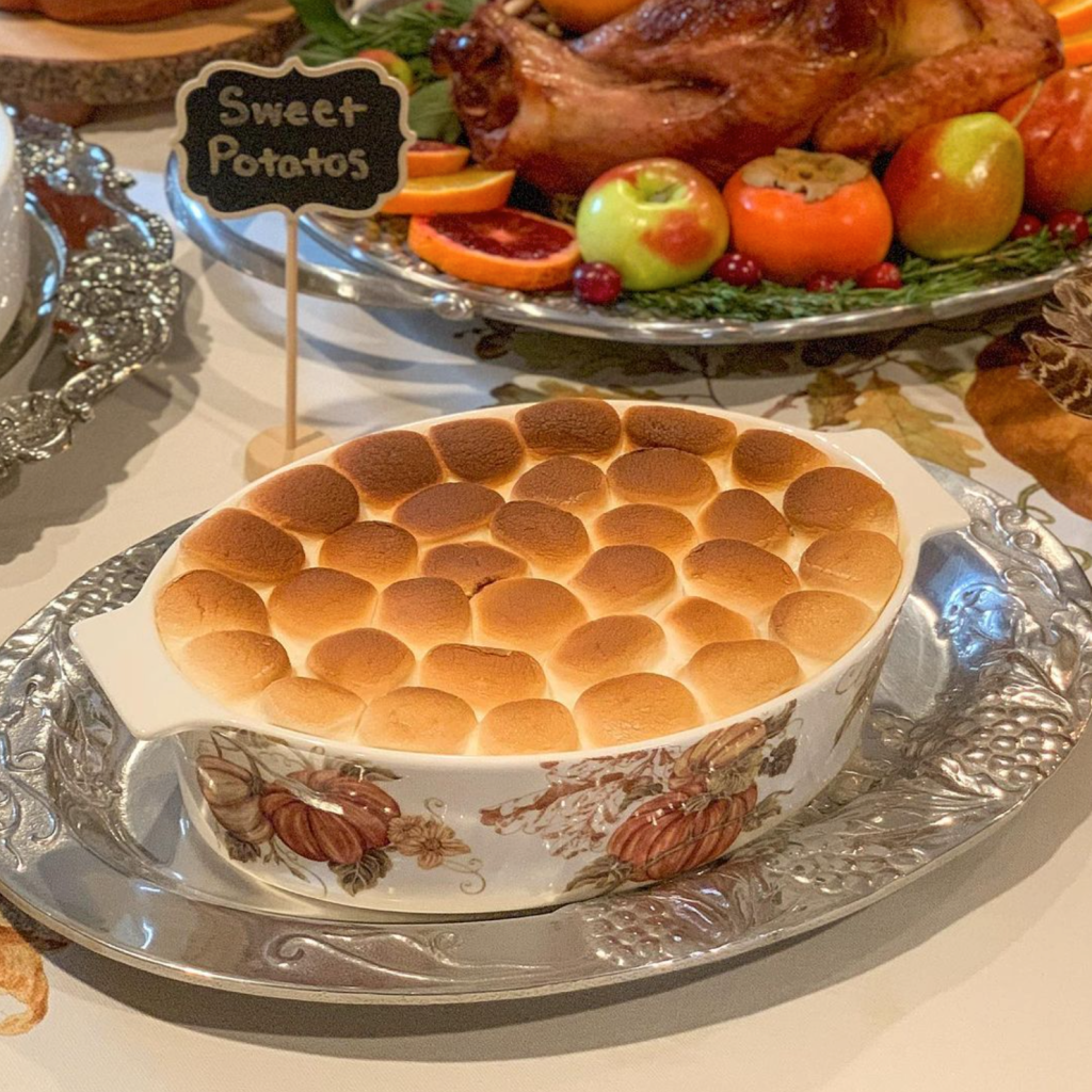 🍠 Bake it on 350°F for 20 minutes, then take it out of the oven, arrange the marshmallows on top and pop it back into the oven.