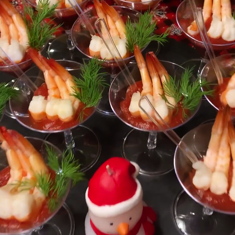 🍤Instead of serving my shrimp cocktail family style in my big Martini bowl, this time, I did individual portions. I added some cocktail sauce in small cups and topped it with 3 shrimps and fresh dill, and it was gone in no time 🤩❤️