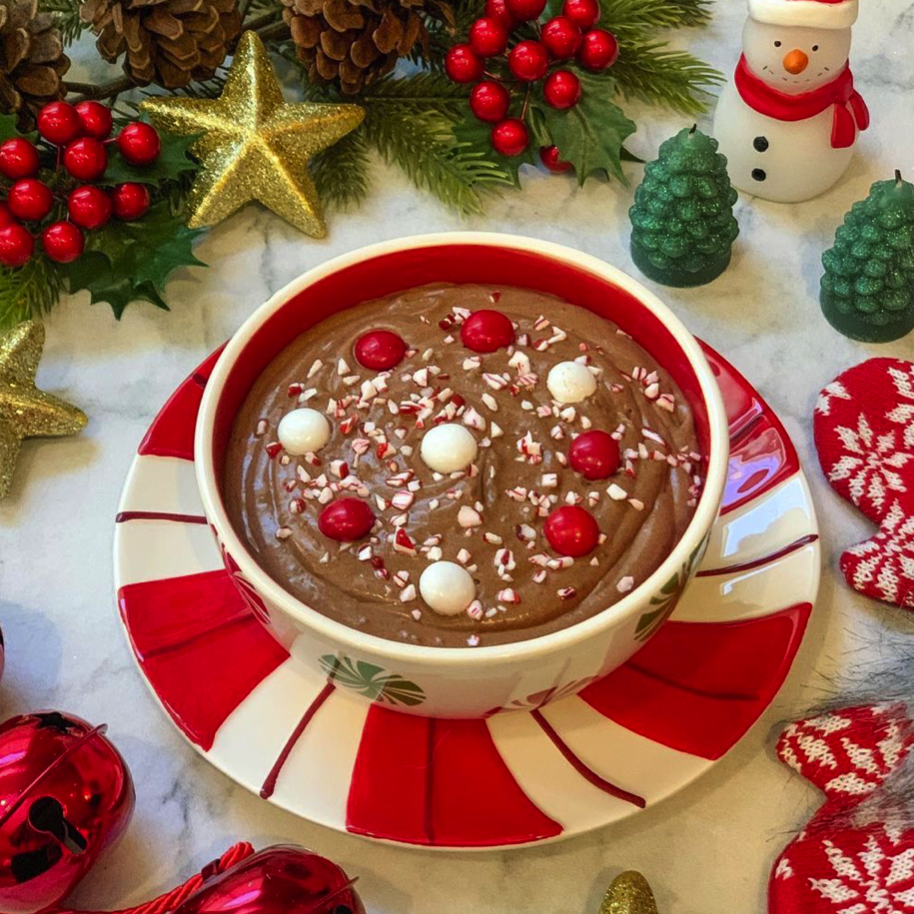 🍫 Transfer to a serving bowl and add your favorite toppings. I added peppermint M&M’s and more peppermint crunch.